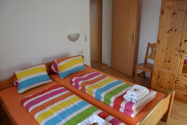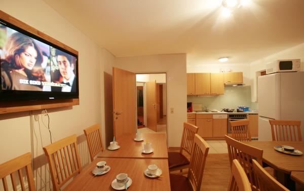 • V prvním patře jsou čtyři 2-lůžkové ložnice, samostatná vybavená kuchyň a jídelna s TV. 2x soc. zařízení se stejnou výbavou jako v přízemí a dva balkony. Tento apartmán nabízí příjemné ubytování až pro 8 osob. (B2)