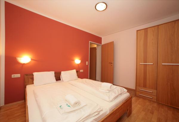 Každý z nich se skládá ze samostatné ložnice, obývacího pokoje s rozkládacím dvoulůžkem, samostatnou vybavenou kuchyňkou, soc. zařízením (WC, umyvadlo, sprchový kout, fén na vlasy), TV, terasa. Tyto apartmány jsou vhodné pro 4 osoby, ale samozřejmě umožňují komfortní ubytování pouze 2 osobám.