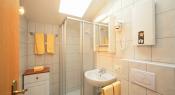 • V prvním patře je prostorný apartmán (A3), skládající se ze čtyř 2-lůžkových ložnic, vybavené kuchyně s prostorným jídelním koutem a LCD TV, 2x soc. zařízení se stejnou výbavou jako v přízemí a dva balkony. Tento apartmán je vhodný až pro 8 osob.